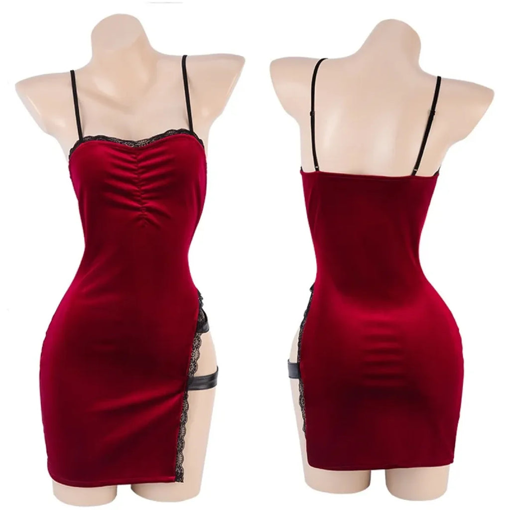 Pair this stunning set with bold red lipstick and a sleek hairstyle to capture Ada Wong’s signature glamour. For added effect, accessorize with a toy weapon or trench coat to elevate the look.