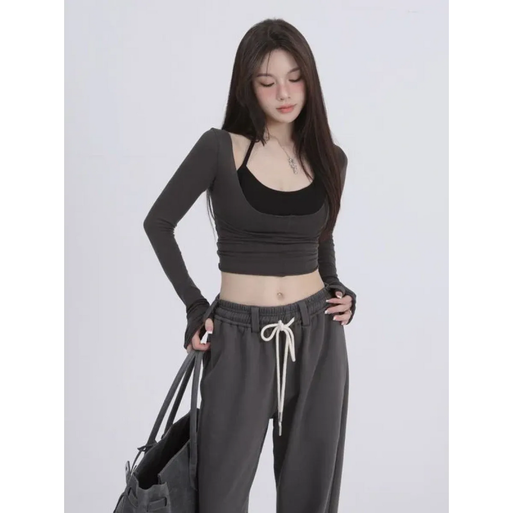🌸 Introducing the Aesthetic Halter Two-Piece Set: Harajuku Long Sleeve Tee 🌸