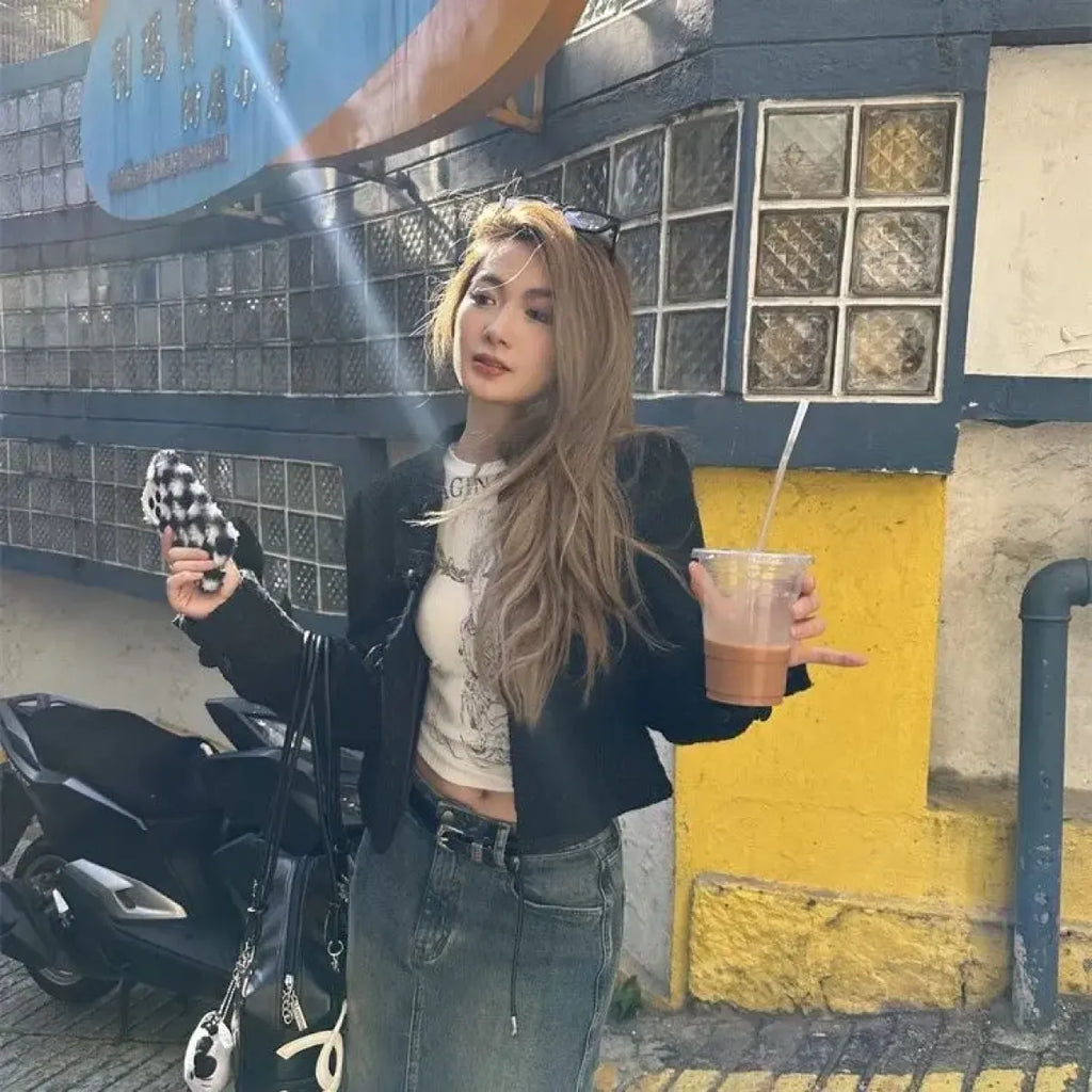 Pair this cardigan with your favorite pastel skirt and chunky sneakers for a Harajuku-inspired look that’s both cute and edgy. Perfect for a day out in the city or a cozy gathering with friends!