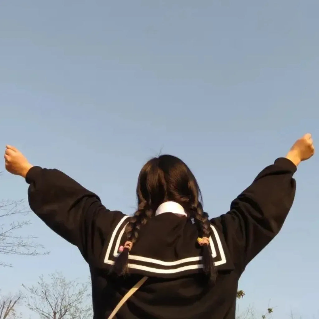 Pair this sailor-collar jacket with a pleated mini skirt and lace-up sneakers for a preppy, playful vibe. Want something edgier? Throw it over a graphic tee and high-waisted jeans for a trendy streetwear twist. Add a bucket hat for the ultimate spring/summer look!