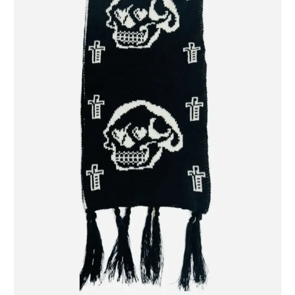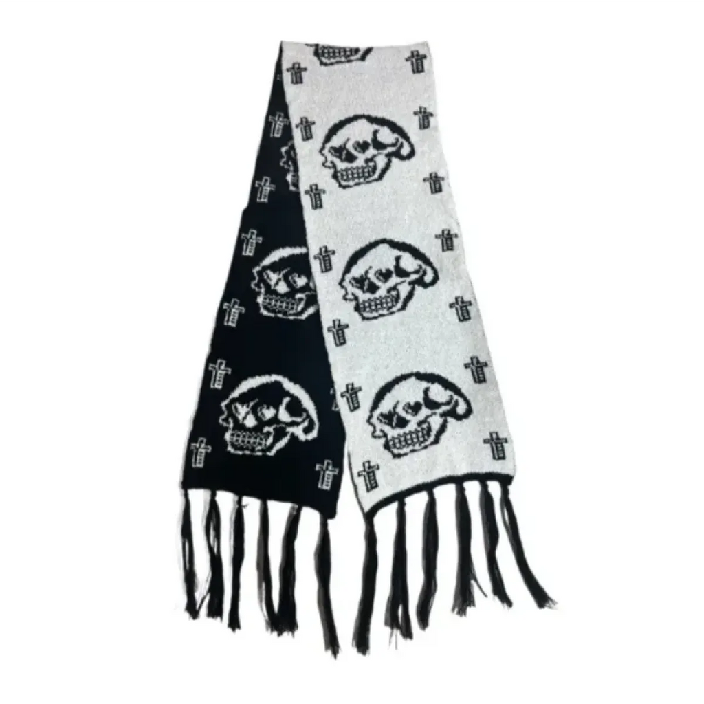 Wrap yourself in edgy Harajuku charm with this gothic-inspired cat print scarf! Featuring a bold black-and-white design with playful tassels, this versatile piece is perfect for adding a touch of Y2K flair to any outfit. 🐾