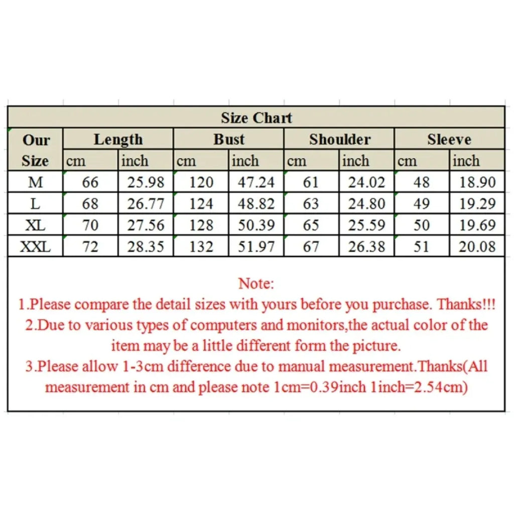 - 📏 Multiple Sizes: M, L, XL, XXL (Please refer to size chart for accurate fit)