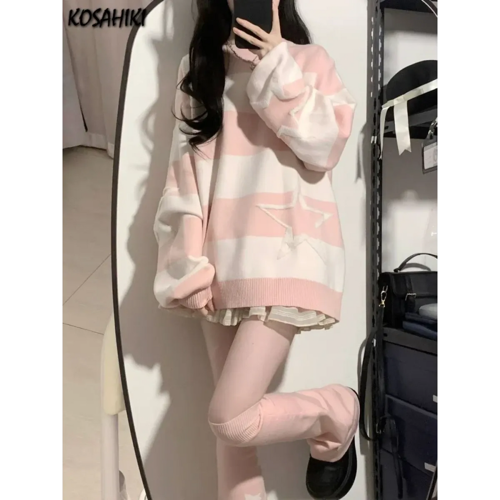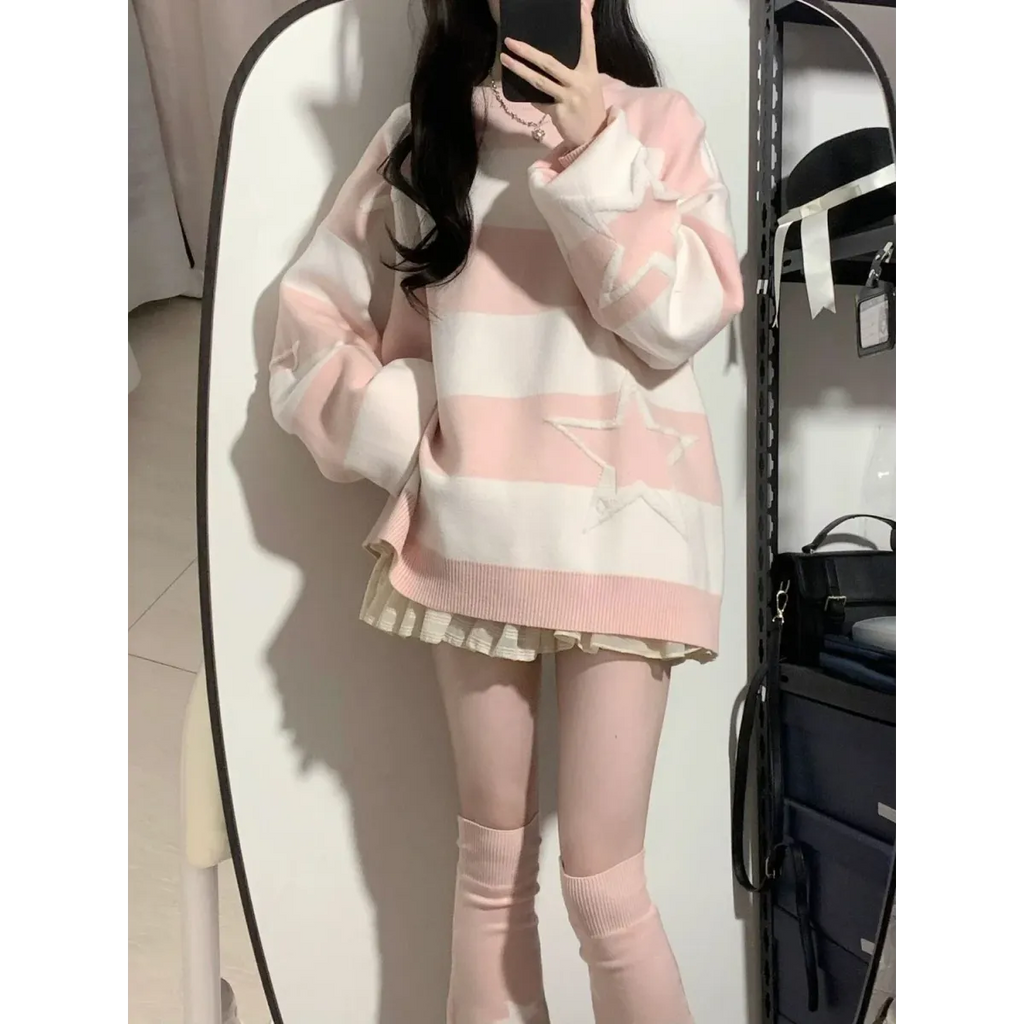 This oversized Cosmic Grunge Starry Sweater blends soft pastel pinks with a celestial star patchwork, creating the perfect mix of sweet and edgy vibes. Whether you're channeling Harajuku charm or cozy Y2K flair, it’s a dreamy essential for your aesthetic wardrobe.
