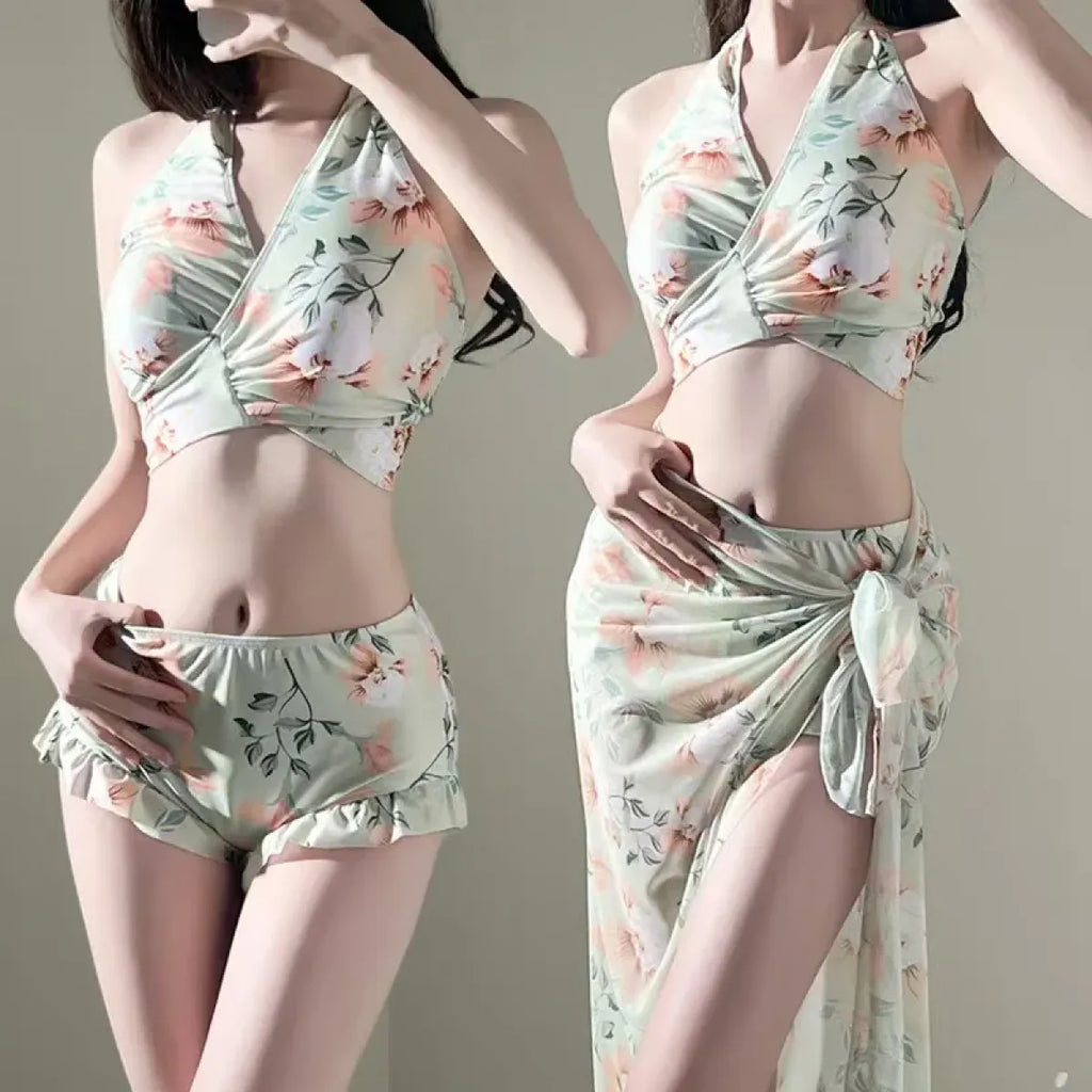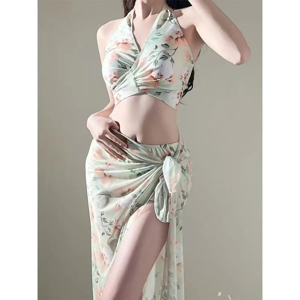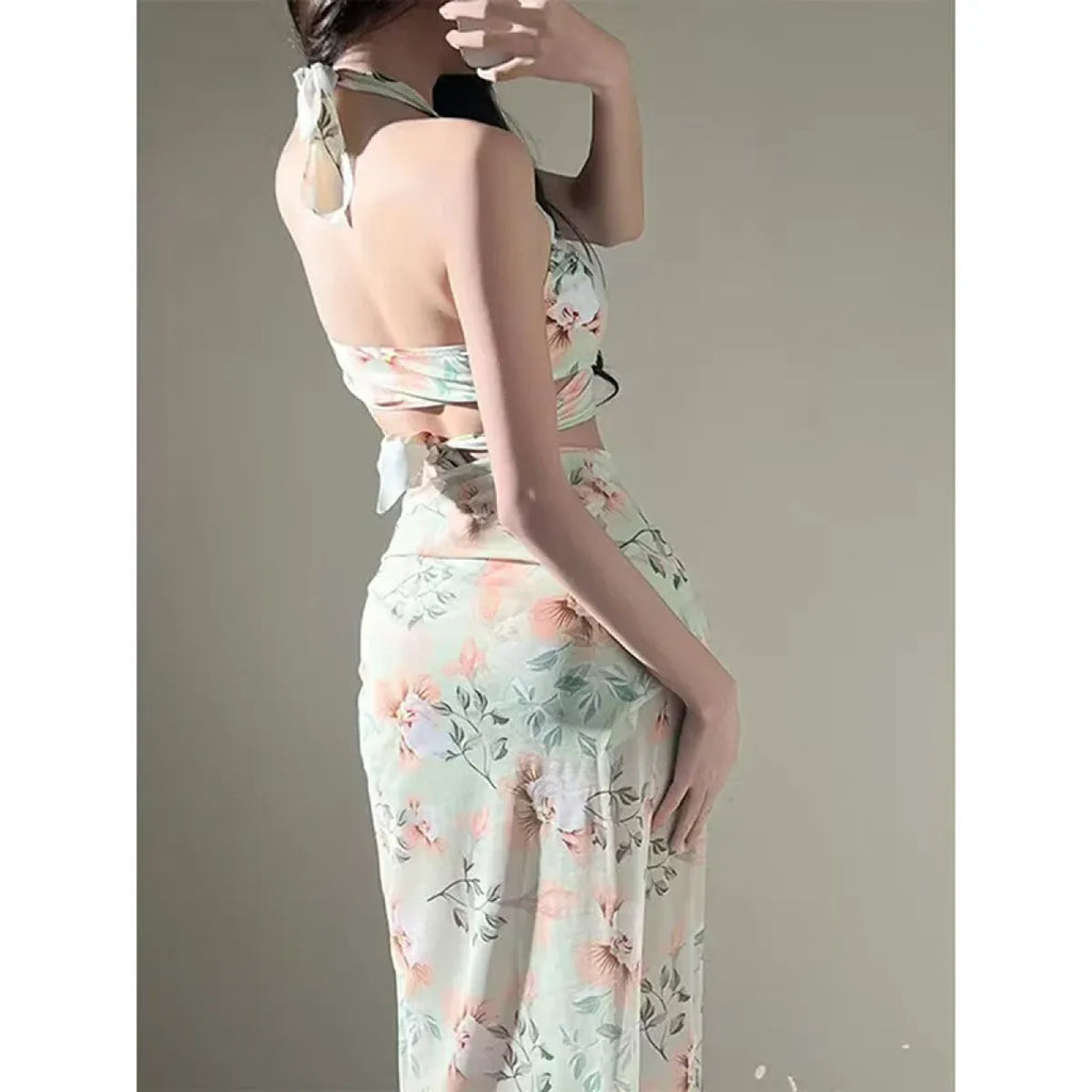 This gorgeous Floral Halter Bikini Set brings together dreamy florals, flirty ruffles, and a breezy mesh wrap skirt for a look that’s equal parts sweet and stunning. It’s your perfect go-to for seaside photos or sipping mocktails under the sun!