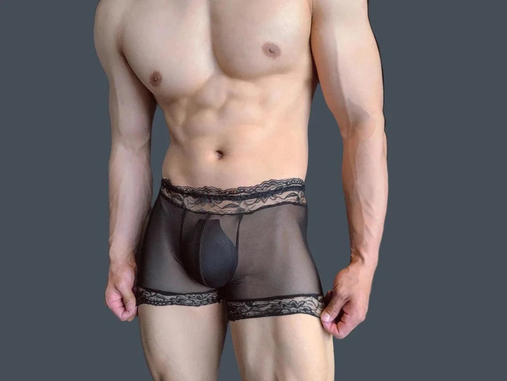 Introducing our Gay Boxer Briefs, the perfect combination of sexy and comfortable. These Lace See Through Ultra-Thin Boxer Briefs add a touch of allure to your daily wardrobe. With a playful and quirky tone, you'll feel confident and stylish no matter the occasion. (And who doesn't love a little lace?)