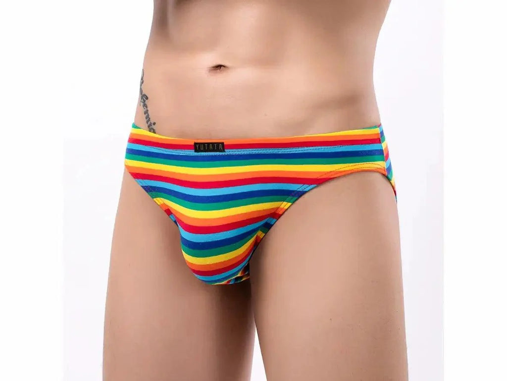 Unleash your colorful side with our Gay Briefs! These Sexy Stripe Rainbow Briefs are a playful and fun addition to your underwear collection. Express yourself in style with these quirky and vibrant briefs. (Warning: wearing these may lead to rainbow-related compliments.)