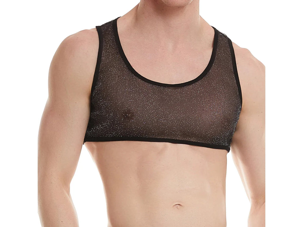 Dare to flaunt your fabulous self in a MENSSEXI Shiny See Through Crop Top! You'll be sure to make a statement with its show-stopping, reflective design made to sparkle. Just add your favorite jeans for a totally stylish and daring look. Shine on!