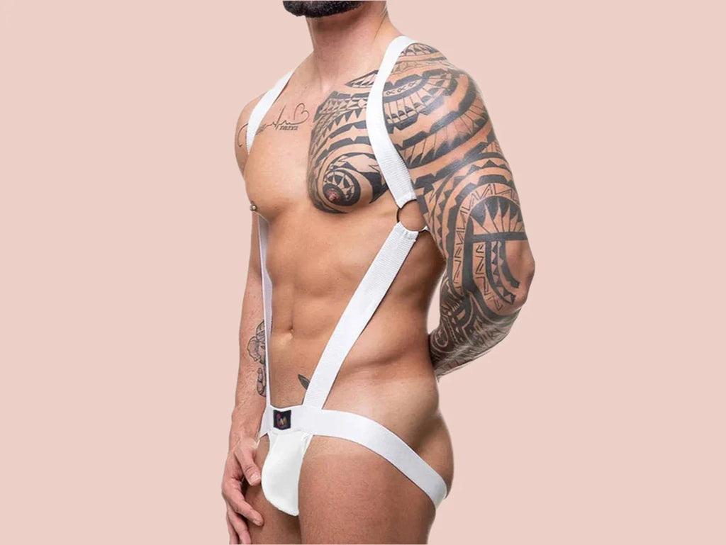 Indulge in some cheeky fun with Gay Harnesses by CLEVER-MENMODE! This Suspender Strap Jockstrap Harness is perfect for adding some spice to your bedroom adventures. With its unique design and comfortable fit, it's sure to bring out your playful side. Go ahead, be a little naughty!