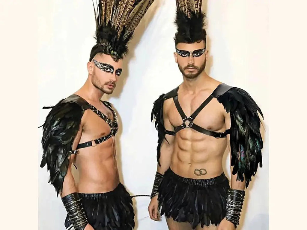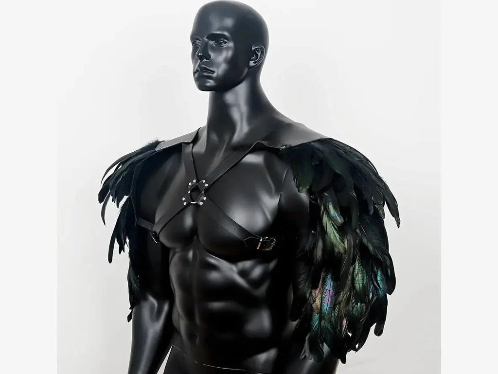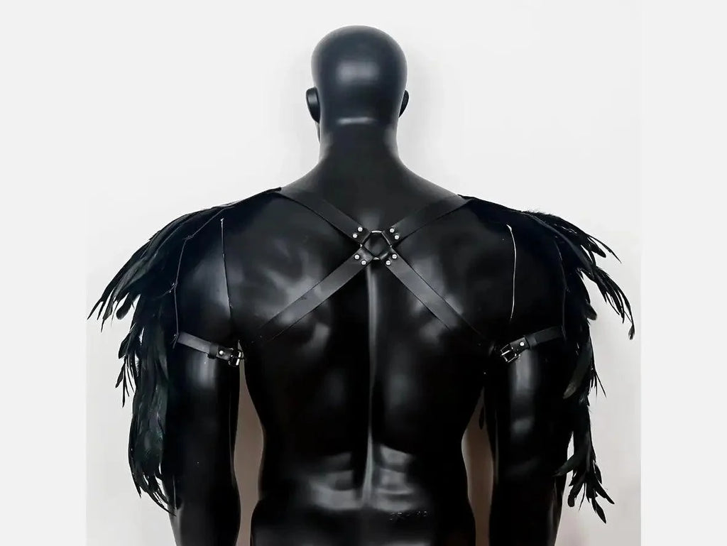 Get ready to strut your stuff with our Gay Harness! Made of faux leather and featuring a double shoulder design with feather accents, this harness is perfect for any costume party. You'll be the talk of the town and the center of attention in this unique and eye-catching accessory.