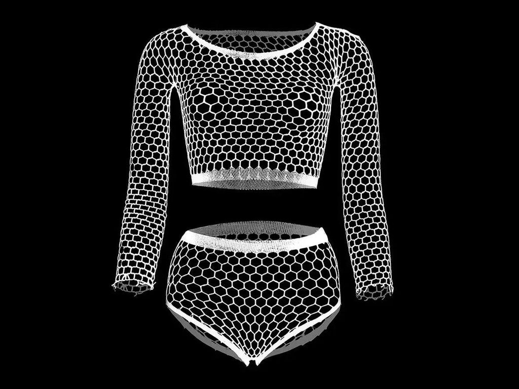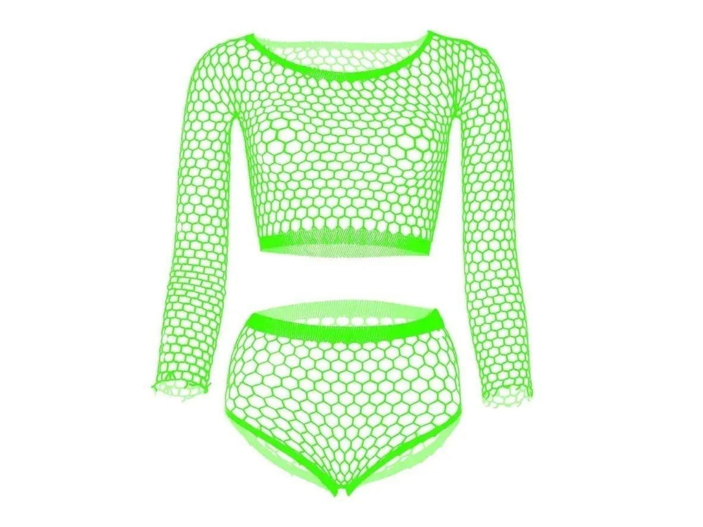 Light up the night in this glamorous Gay Lingerie set. With mesh see-through fishnet crop top and briefs, you'll be dazzling 'em - and putting it all on show! Get ready to turn up the heat!