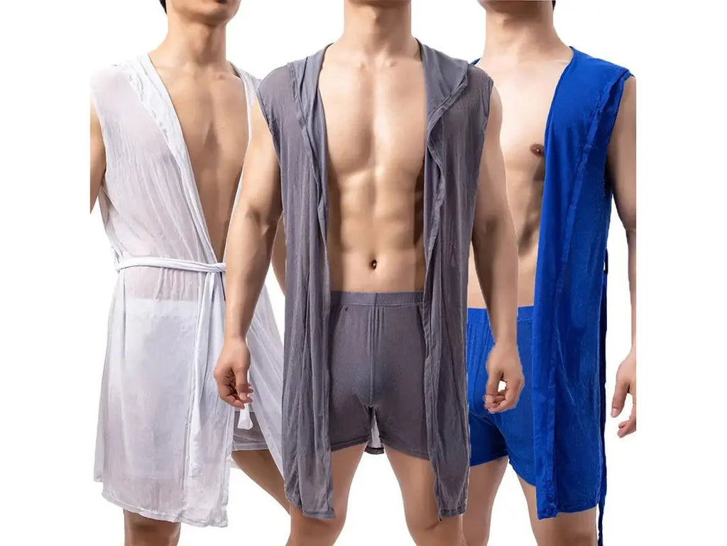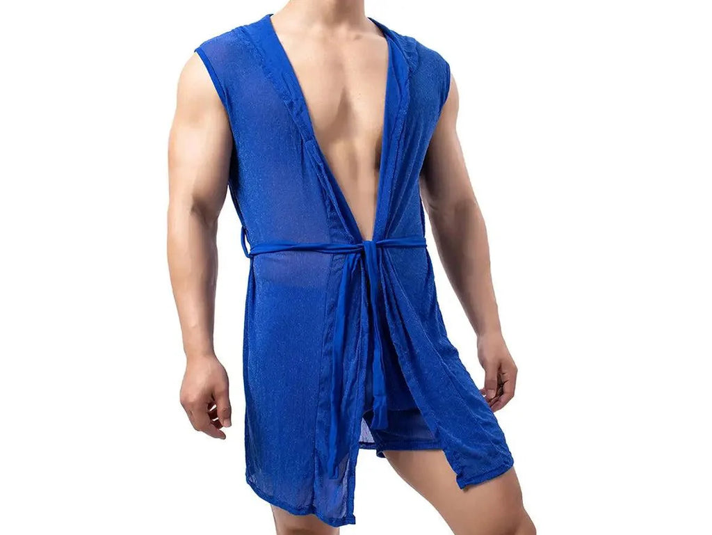 Get cozy in our Gay Loungewear! Enjoy the airy and comfortable mesh material, perfect for lounging around the house. This sleeveless, loose-fitting bathrobe is sure to make you feel relaxed and stylish. Perfect for any leisure occasion.