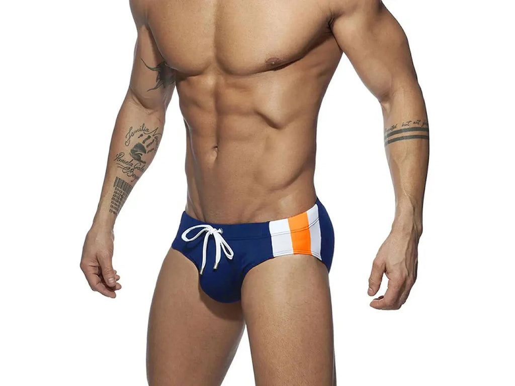 Make a splash with our Gay Swim Briefs! Featuring a big pouch and side stripes, these sporty swim briefs provide both style and comfort for your aquatic adventures. Get ready to turn heads at the beach or pool in these unique and playful swimwear.