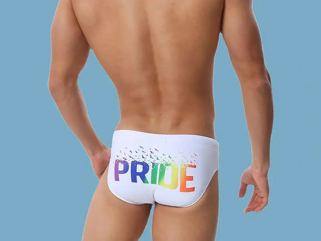Show off your pride in the pool with Gay Swim Briefs! These white briefs feature a pushup pad for added lift and come in a vibrant LGBTQ+ pride design. Stand out and make a statement while feeling confident and supported in the water.