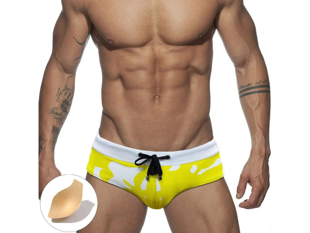 Make a splash at the beach or pool with our vibrant Splash Swim Briefs! These form-fitting gay swim briefs combine eye-catching style with comfortable support. Perfect for showing off your assets while soaking up the sun, they're designed to turn heads and boost confidence. Quick-drying fabric means you'll look fabulous from swim to shore.