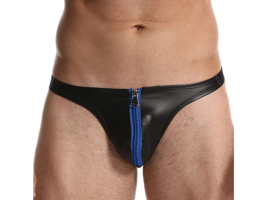 Flaunt your fearless, fabulous self in these CAVE HERO Zipper Black Faux Leather Thongs! Best part? You don't have to sacrifice comfort for style with these oh-so-soft fabric and leather hybrid thongs. Dare to be daring with these totally unique undies!