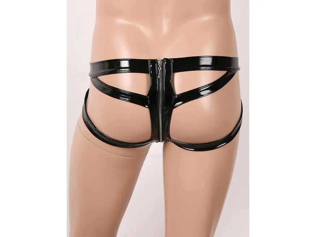Get ready to turn heads with our Gay Thongs! These wet look faux leather thongs feature a double-ended zipper for a playful surprise. Perfect for a night out (or in) with your significant other. (Warning: may cause heart palpitations).
