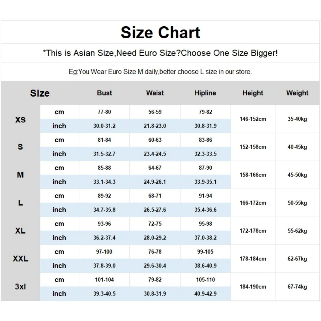 | XL | 93–96 | 72–75 | 95–98 | 172–178cm | 55–62kg |