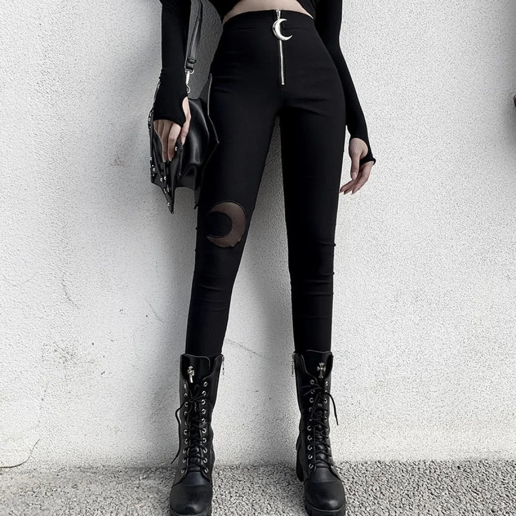 AMAZING GOTHIC CRESCENT MOON CUTOUT PANTS! 44% OFF!