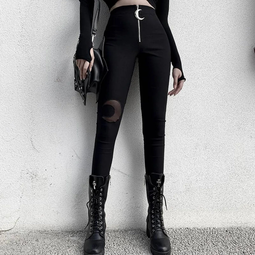 MORE ABOUT GOTHIC CRESCENT MOON CUTOUT PANTS