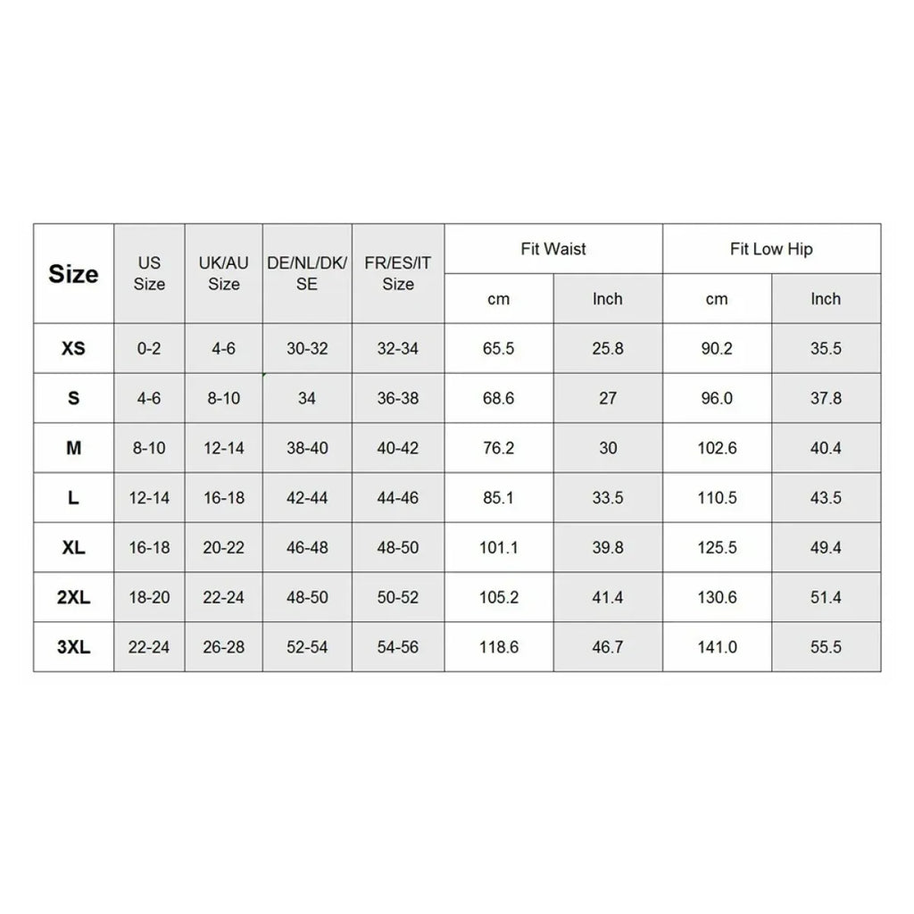 | Size | US Size | UK/AU | DE/NL/DK/SE | FR/ES/IT | Fit Waist (cm/in) | Fit Low Hip (cm/in) |