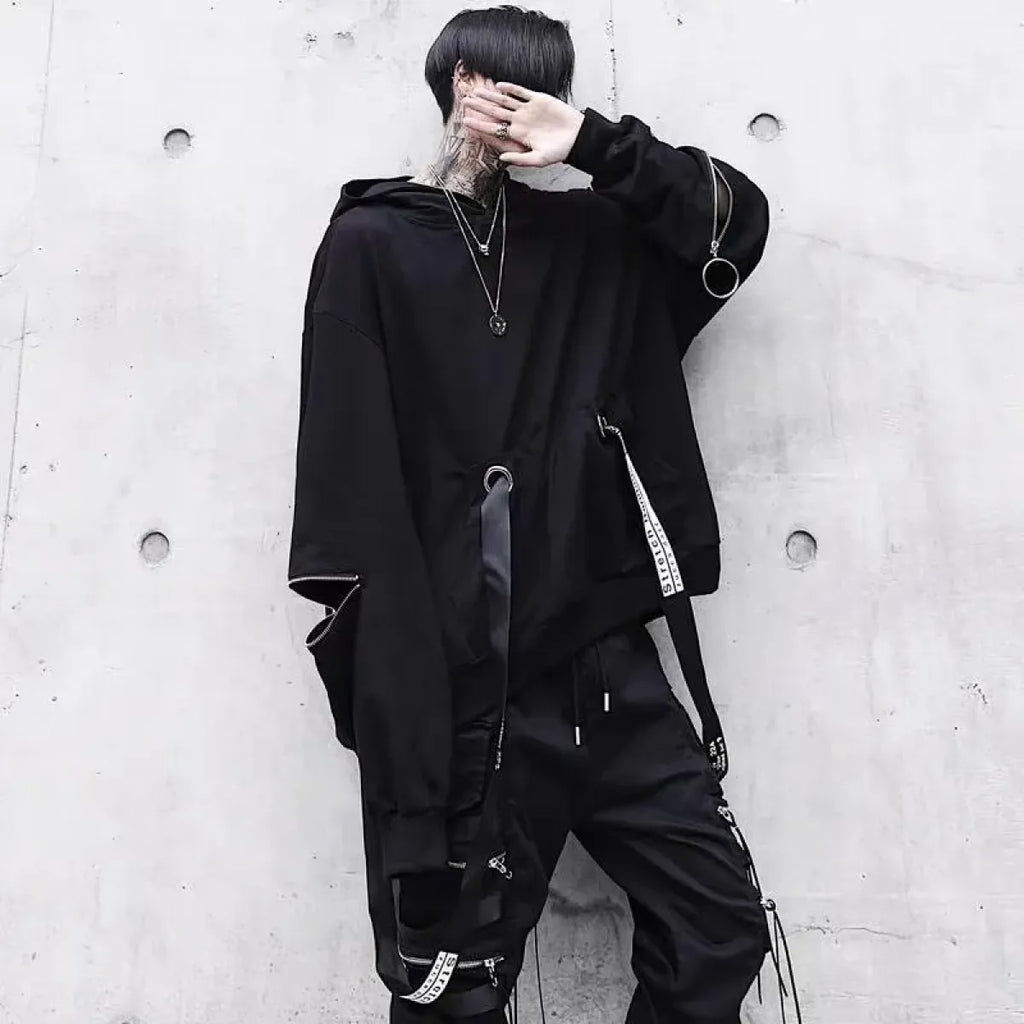 🌸 Introducing the Gothic Techwear Black Hoodie 🌟