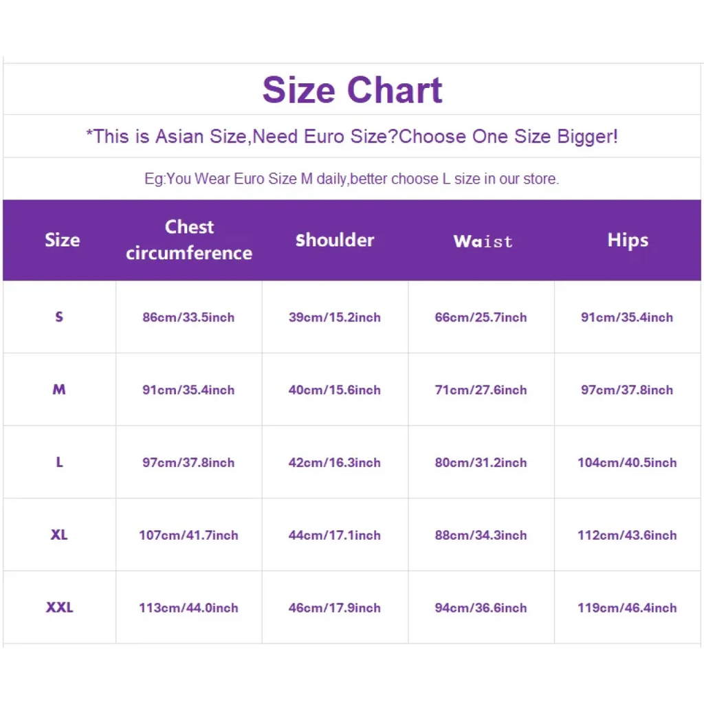 | Size | Bust (cm/in) | Shoulder (cm/in) | Waist (cm/in) | Hips (cm/in) |