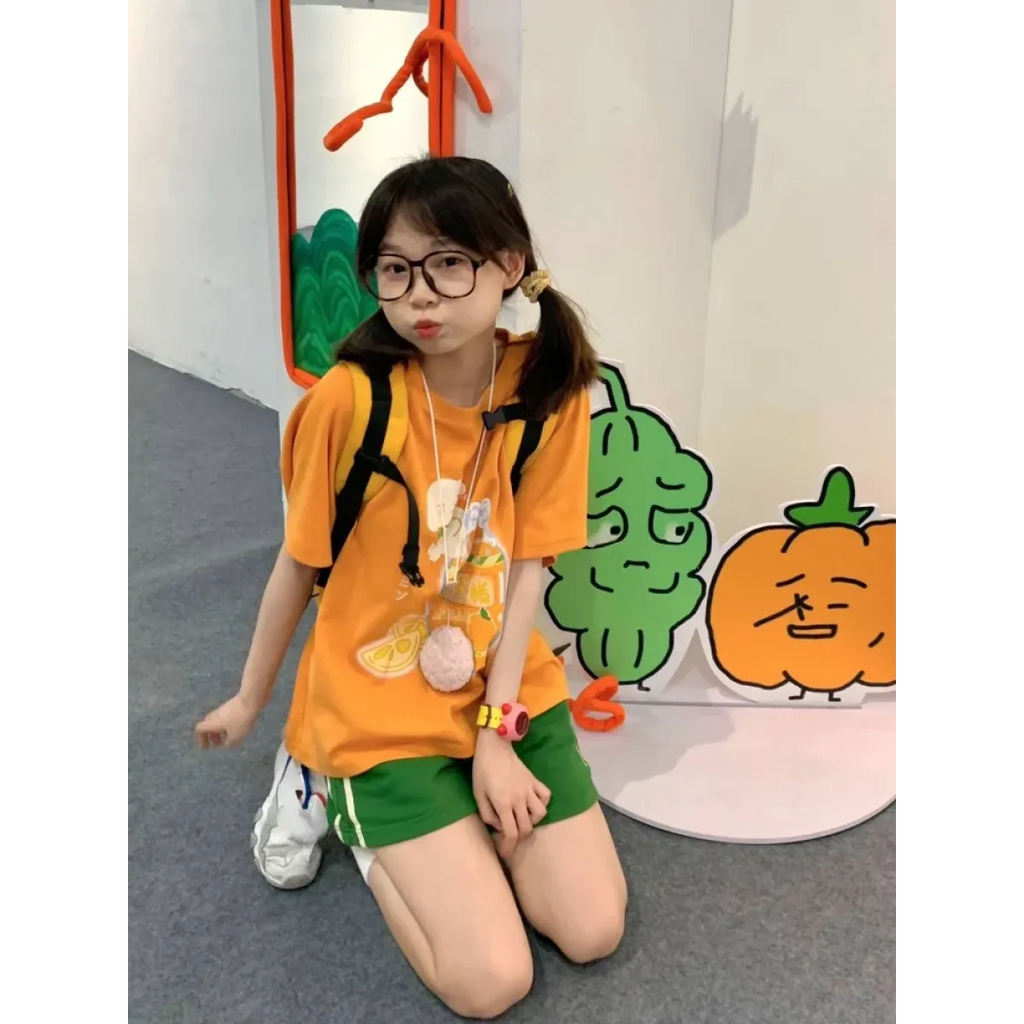This adorable Harajuku Cartoon Print Tee is a vibrant splash of soda-inspired cuteness! With a bubbly cartoon drink graphic and juicy citrus details, it’s the perfect blend of sweet and street—ideal for turning heads on your next café run or selfie spree.