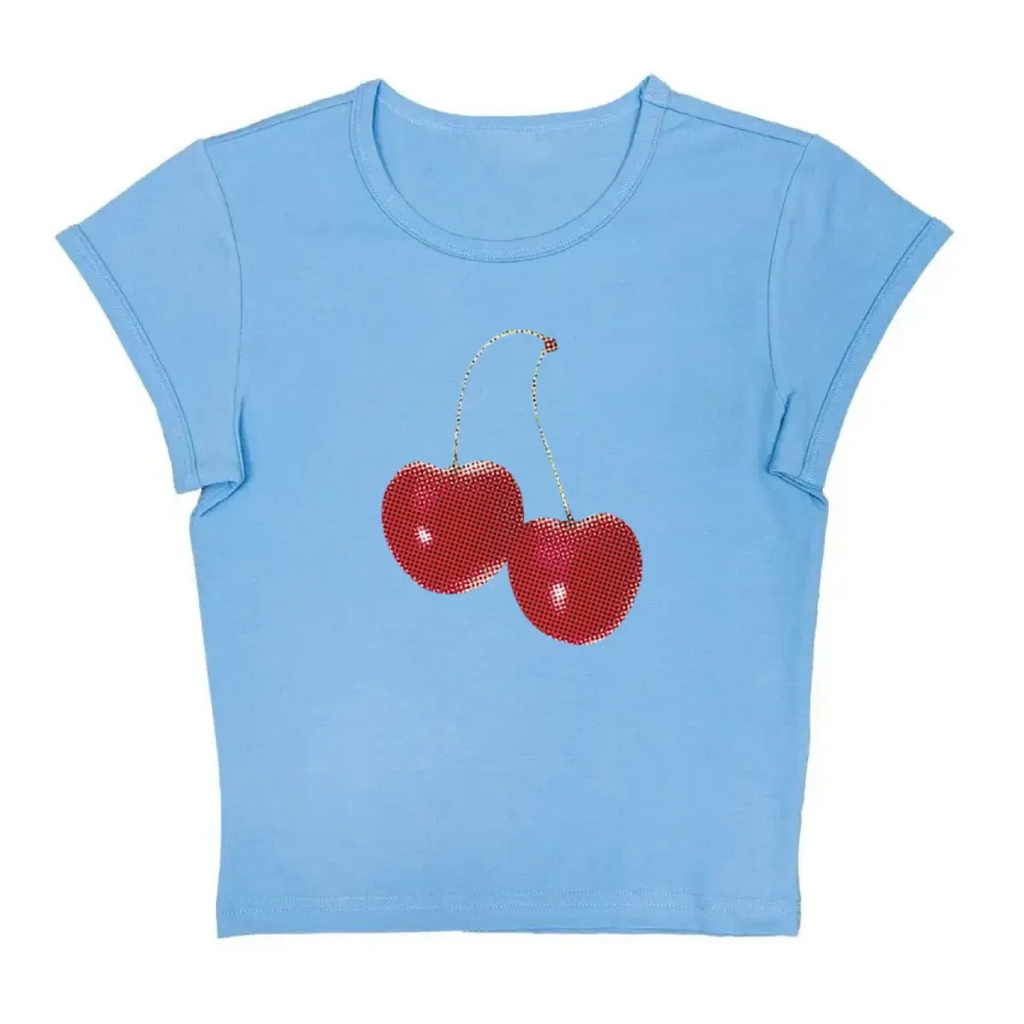 Get ready to turn heads with our Harajuku Cherry Graphic Print T-Shirt, designed for those who love to make a statement. Crafted from a blend of cotton and polyester, this tee offers a slight stretch for comfort and freedom of movement. With its playful cartoon pattern and slim fit, it's the perfect choice for fashion-forward individuals who want to stand out from the crowd.