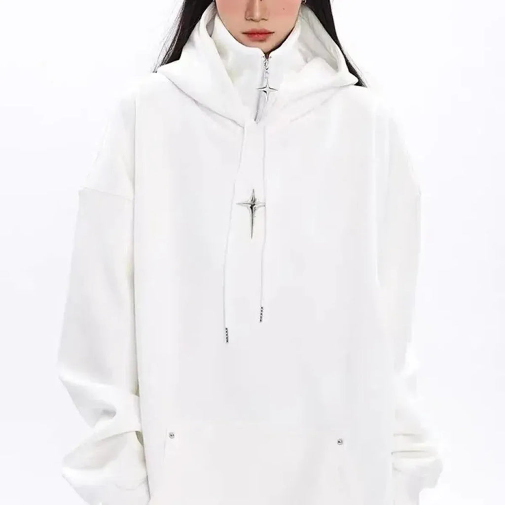 This oversized hoodie brings edgy Harajuku fashion straight to your closet with a sleek high-neck design and eye-catching star zipper pull. Built for all-gender streetwear lovers, itβs a standout piece that keeps you cozy and cool year-round.