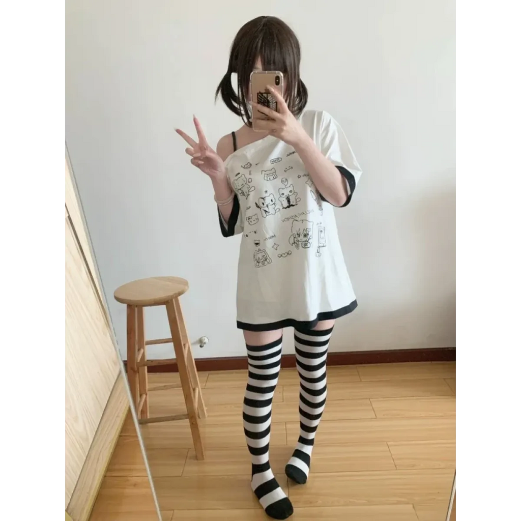 Bring playful retro vibes to your wardrobe with the Deeptown Y2K Cartoon Tee. This loose-fit, short-sleeve top features a fun, vintage-inspired cartoon print, perfect for casual summer outfits. Designed for comfort and style, this tee captures the essence of the Y2K aesthetic with its laid-back fit and bold design.