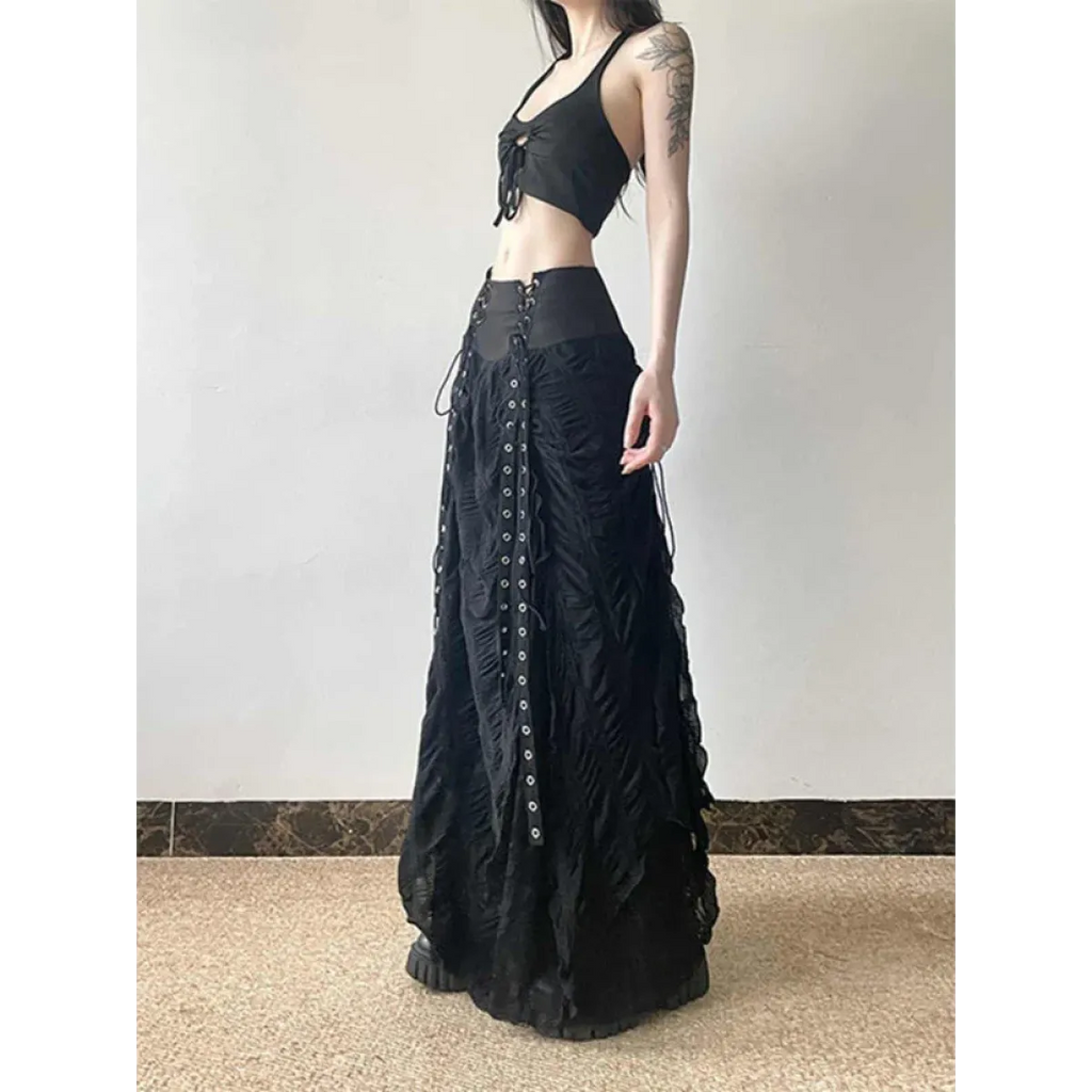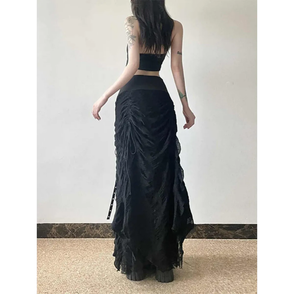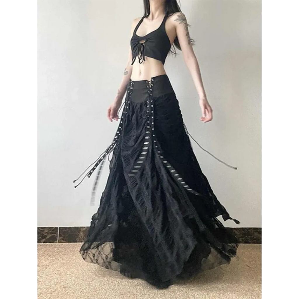 Pair with a lace-up corset top and platform boots for a full gothic fairycore vibe—or go soft grunge with an oversized knit and chunky sneakers. Add layered jewelry and dramatic eye makeup to complete the look.