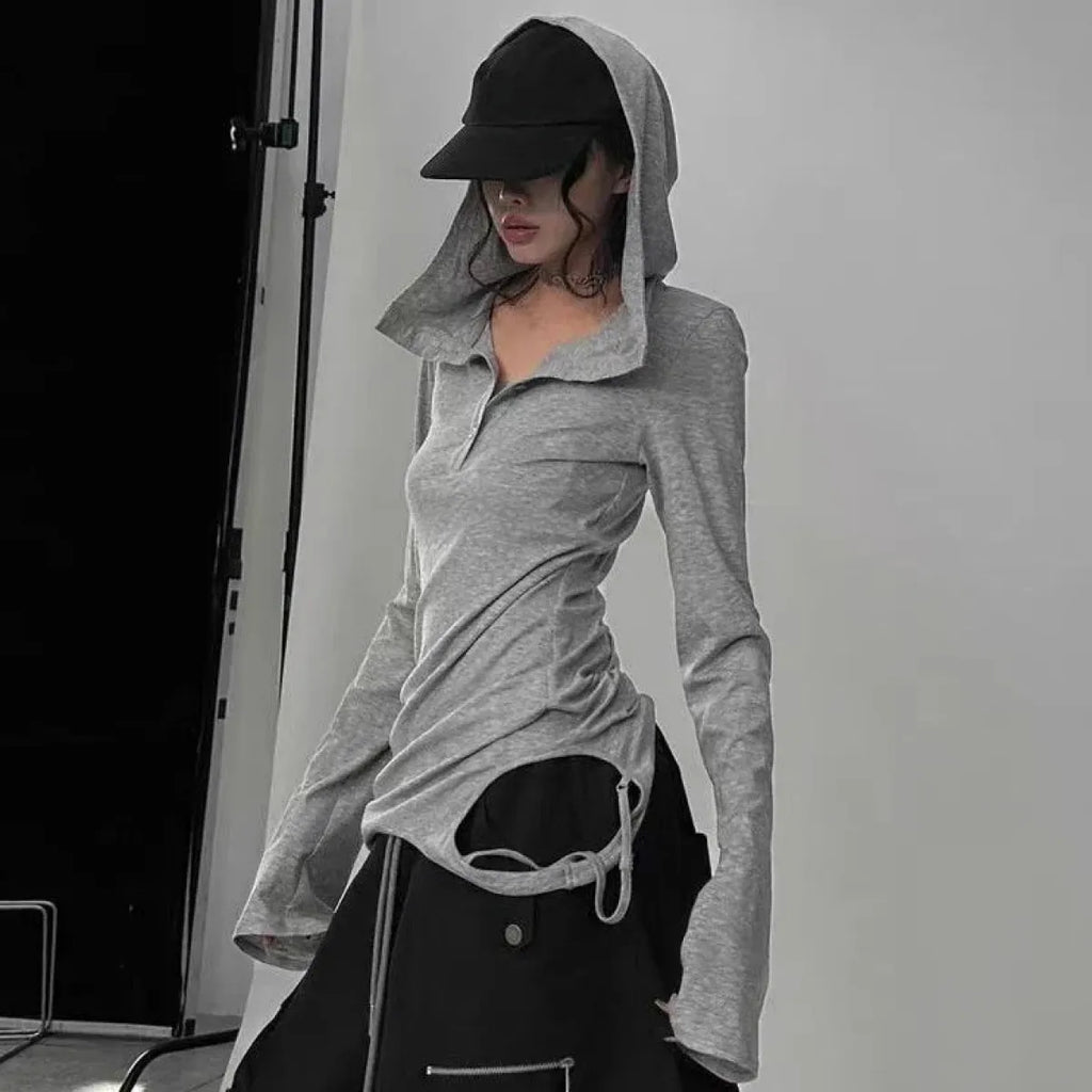 This Harajuku-inspired hooded shirt blends punk attitude with high street fashion. With its slim silhouette, grunge-style holes, and soft stretch fabric, it’s made for turning heads and making statements.