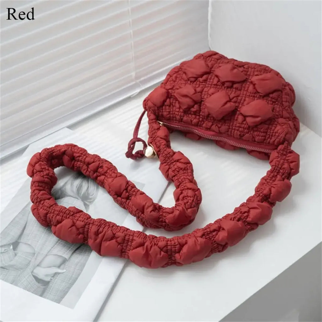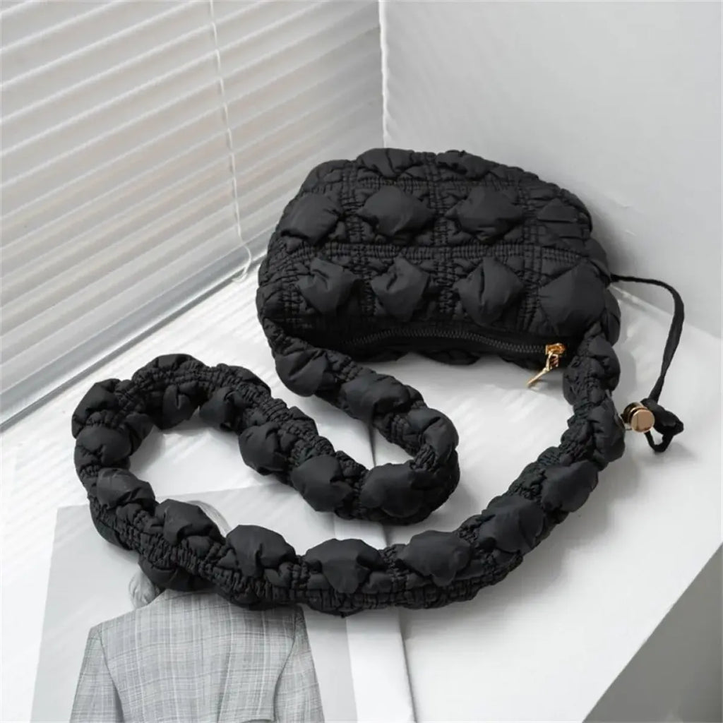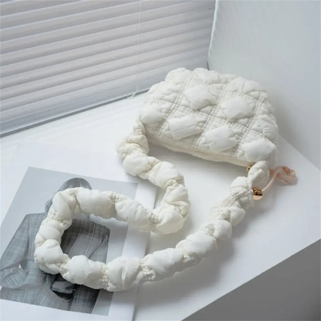 This Harajuku Quilted Shoulder Bag turns heads with its ultra-cute puffed quilting and braided handle, giving you the plush aesthetic of a pillow with the bold attitude of Harajuku street fashion.