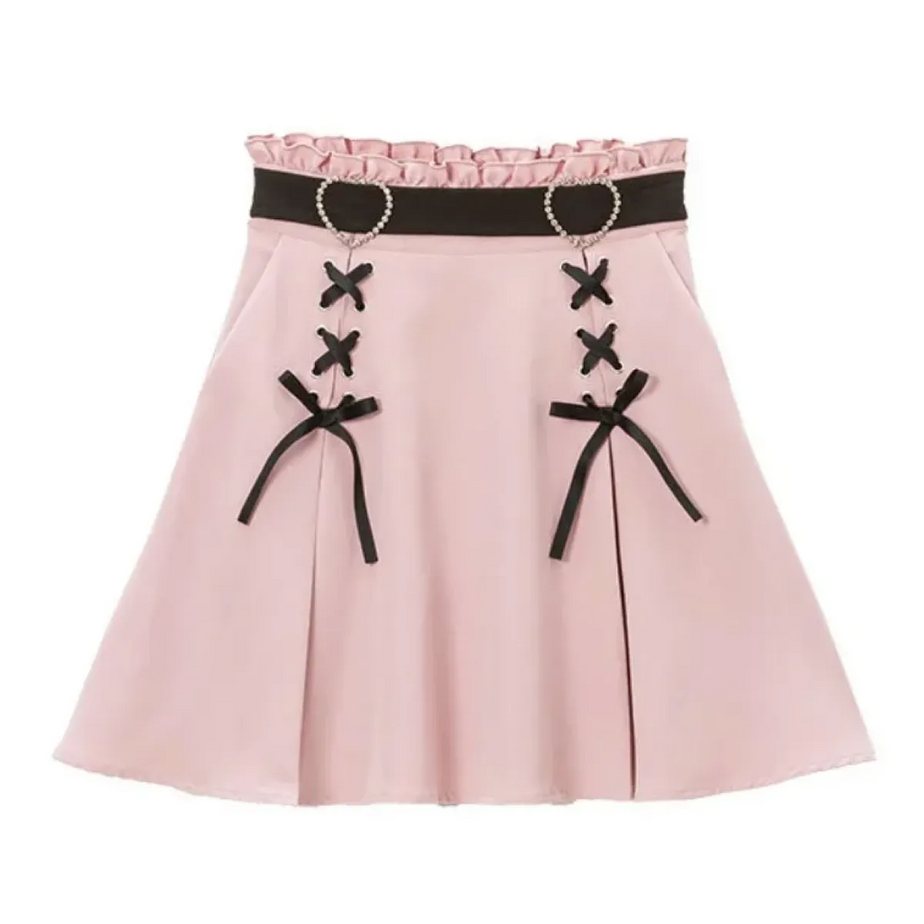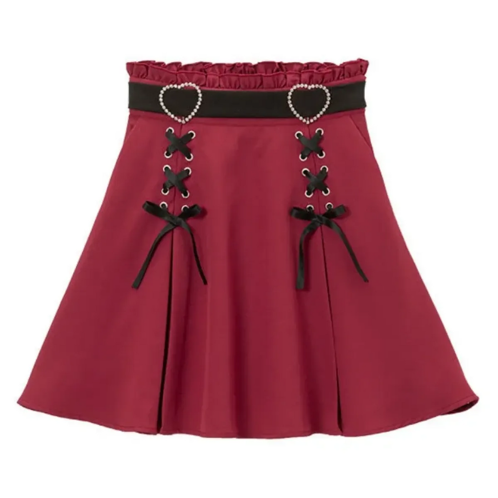 This adorable Harajuku mini skirt blends sweet and edgy with rhinestone heart buckles, delicate lace-up ribbons, and a flattering A-line silhouette — a true staple for kawaii fashion lovers and Y2K babes alike!