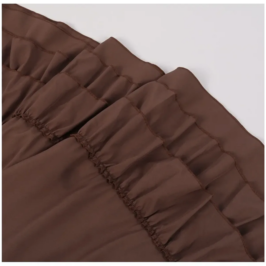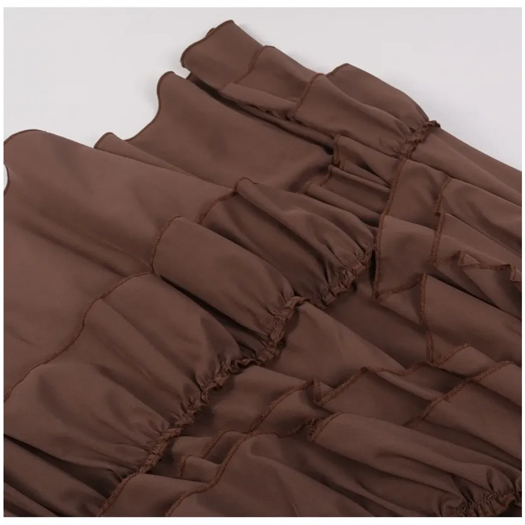 Step into a world of fantasy with this stunning steampunk gothic A-line skirt! Perfect for cosplay, themed events, or adding a vintage twist to your wardrobe, this mid-calf skirt features delicate ruffles and a flattering dropped waistline. Made from a durable polyester-spandex blend, it balances structure with comfort, making it a must-have for lovers of steampunk, gothic, and medieval aesthetics.