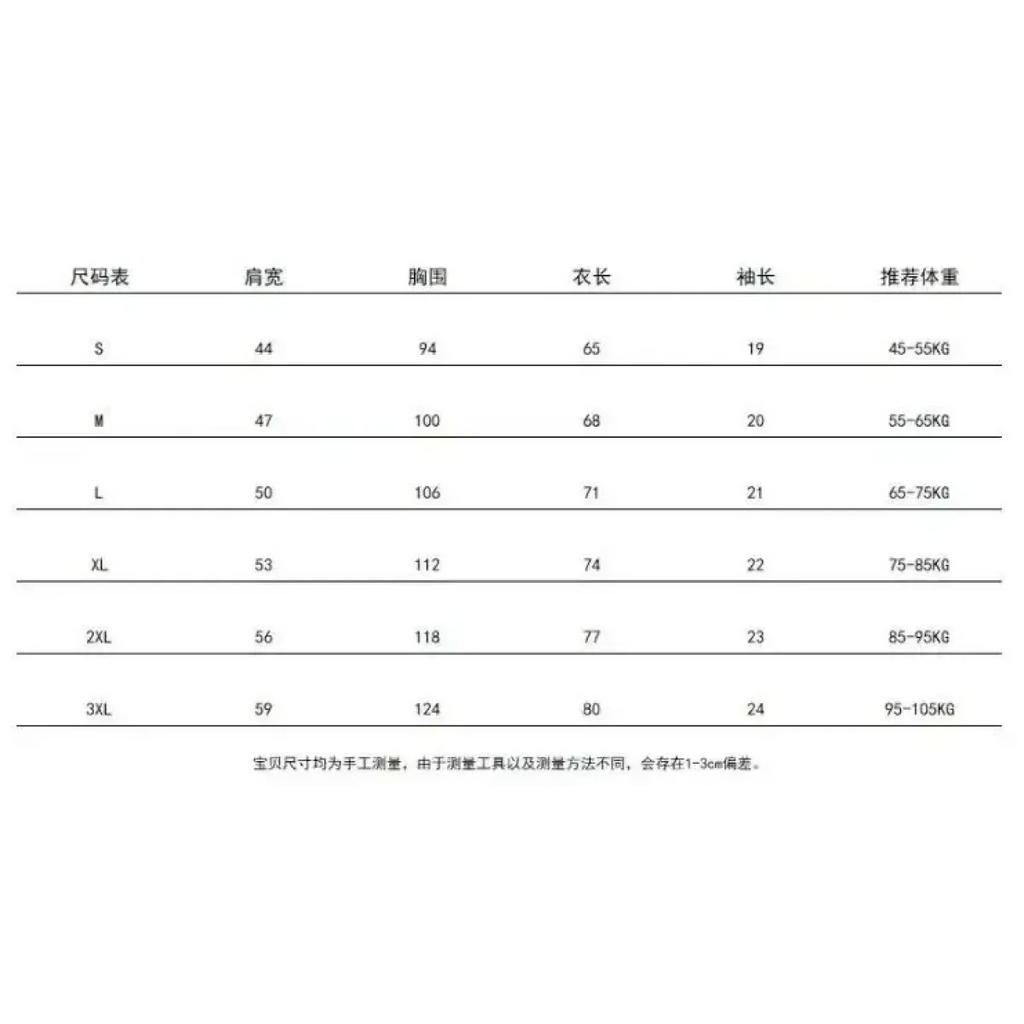 - XL: Bust: 106cm, Length: 67cm, Shoulder: 53cm, Sleeve: 20cm