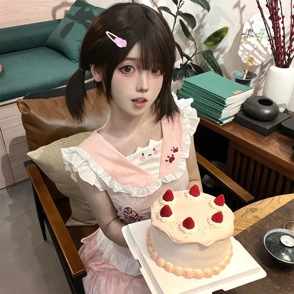 Embrace your inner kawaii with the BLUE DIJIAO Sweet Bow Cartoon V-Neck Tee! This sleeveless, playful top blends adorable cartoon designs with a feminine bow detail, perfect for adding a fun yet stylish twist to your summer wardrobe. Designed with a flattering V-neckline, this lightweight broadcloth tee is a must-have for casual outings or lounging in style.