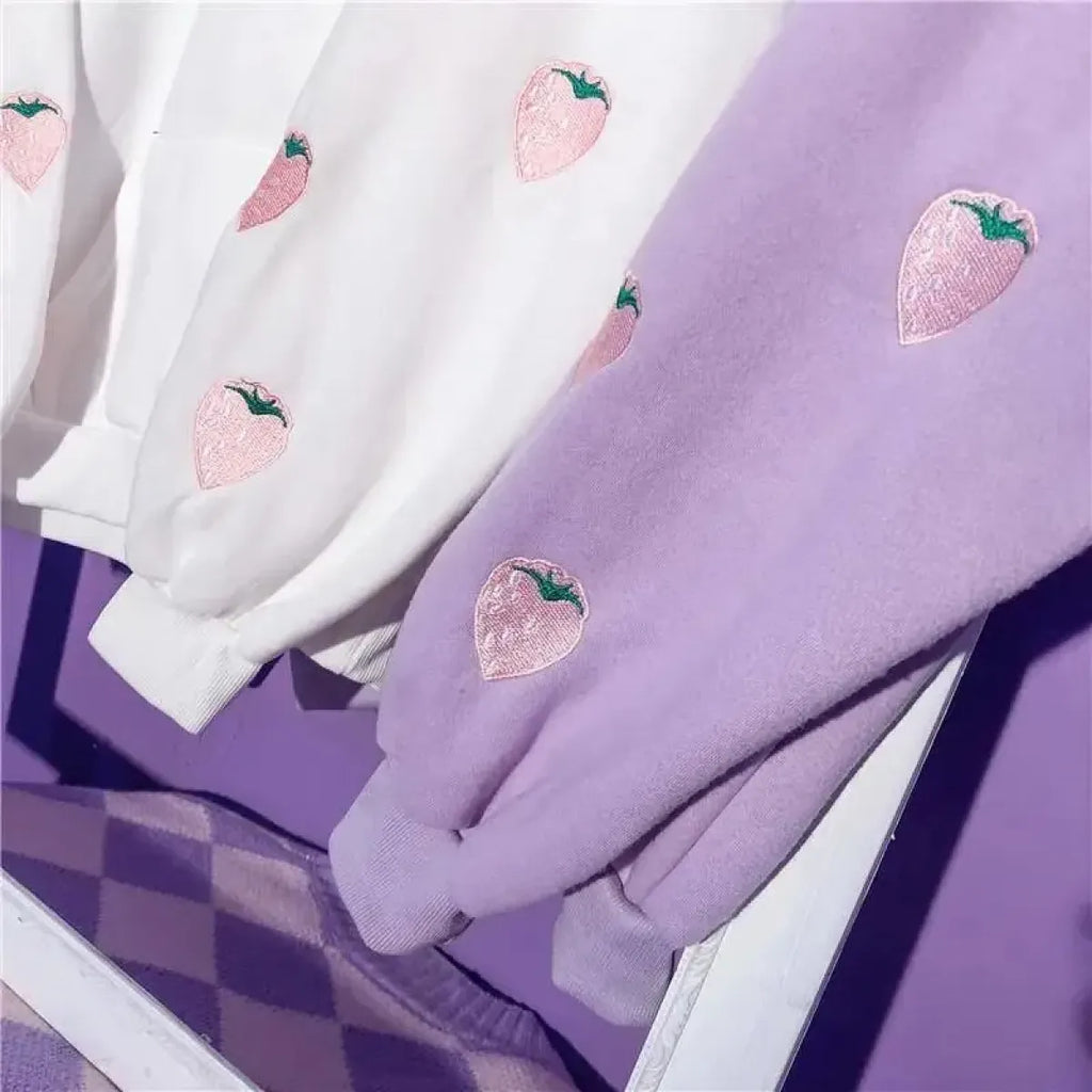 This adorable hoodie adds a fruity twist to your wardrobe with its soft strawberry accents and plush feel. Whether you're lounging, studying, or out for bubble tea, it's your new go-to for instant cuteness and comfort.