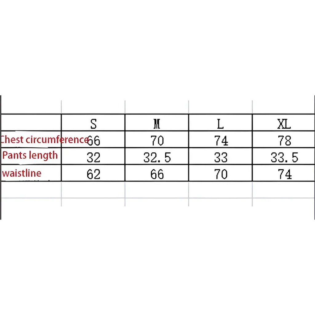 | Size | Chest Circumference (cm) | Pants Length (cm) | Waistline (cm) |