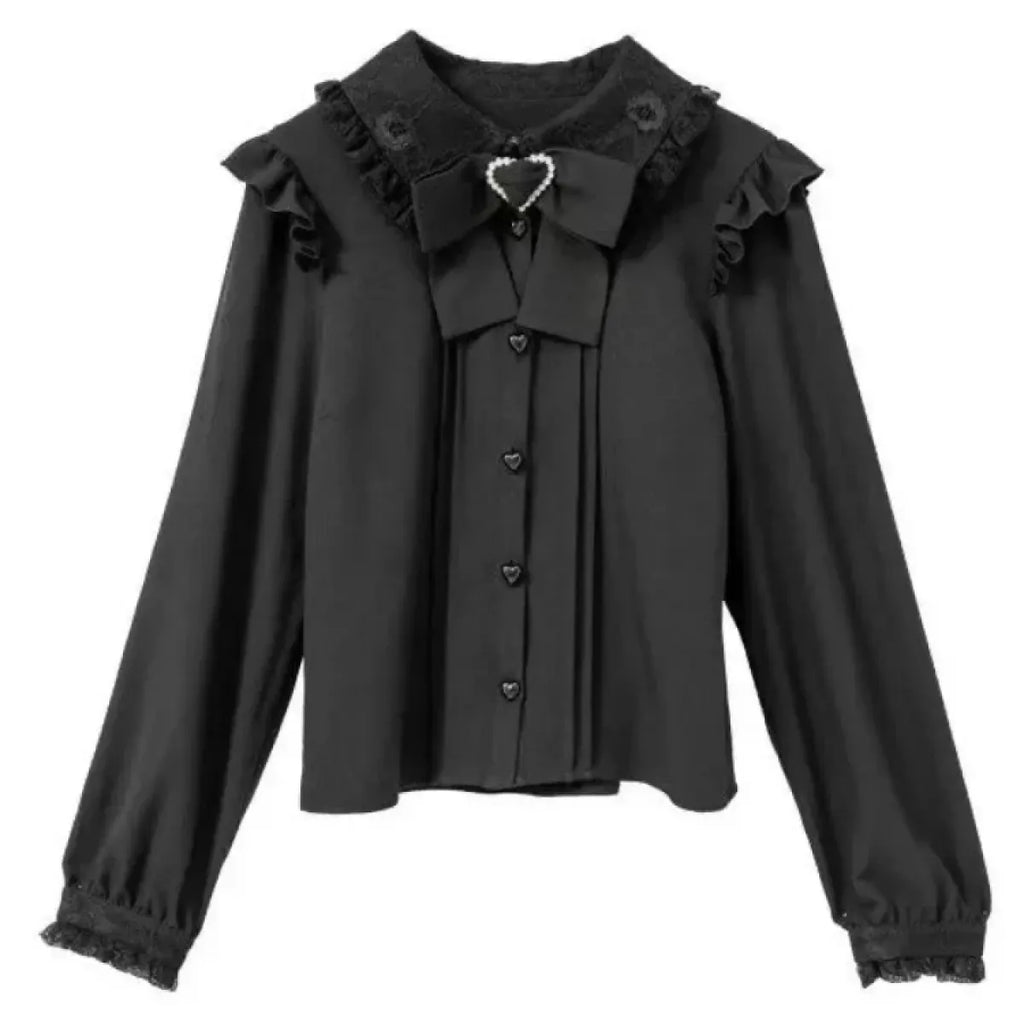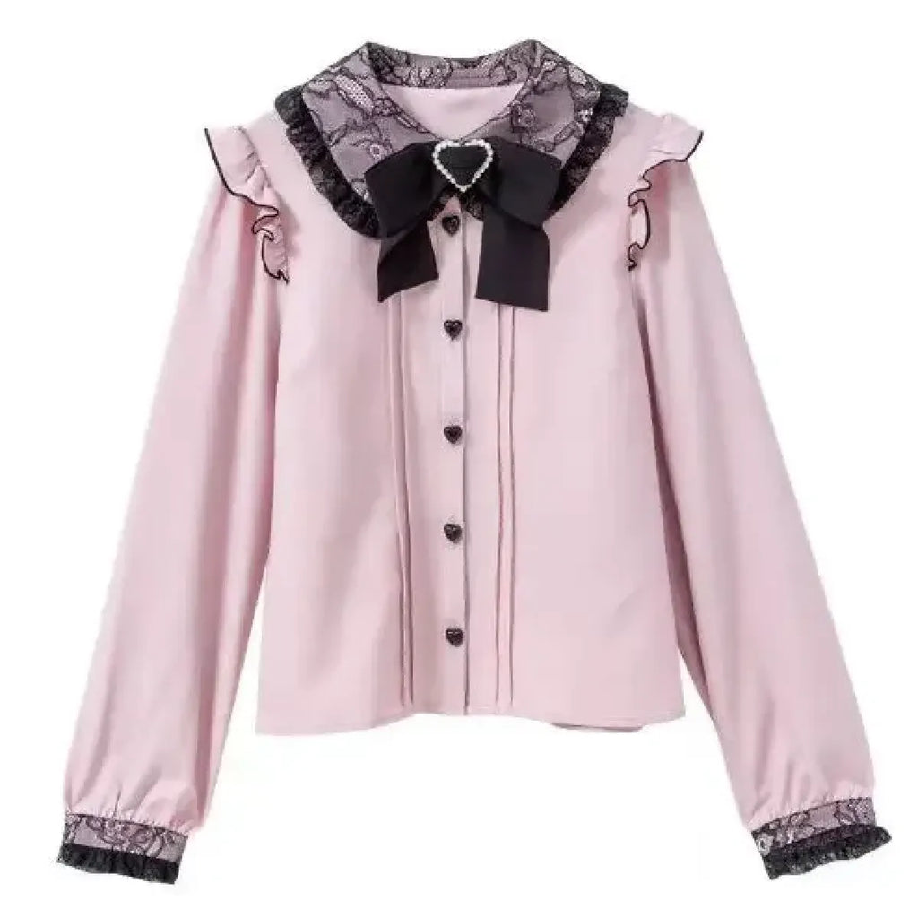 Unleash your inner doll with this Lace Trim Bow Blouse, the perfect fusion of Harajuku sweetness, Y2K edge, and vintage Lolita charm! Crafted with dreamy lace trim and a darling bow accent, this blouse is made for fashion rebels with a soft side. The turn-down collar and full-length sleeves bring that grunge-meets-classic twist, while the loose fit keeps you feeling comfy and effortlessly cool. Whether youβre layering it under a corset or rocking it with a plaid skirt and chunky boots, this is a must-have for your alt wardrobe. ππ€β¨