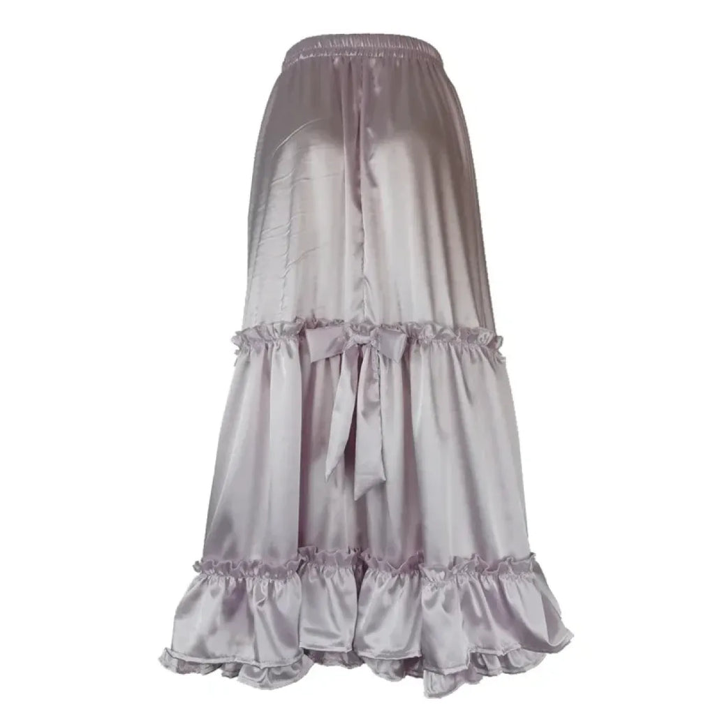 Float into your next tea party or moonlit stroll in the spellbinding charm of the Lavender Satin Tiered Lolita Skirt. This mid-calf masterpiece shimmers in soft simulated silk, layering ruffles upon ruffles in a misty lavender hue. With its natural waistline and gentle pleats, it's the perfect blend of elegant goth and classic sweet Lolita.