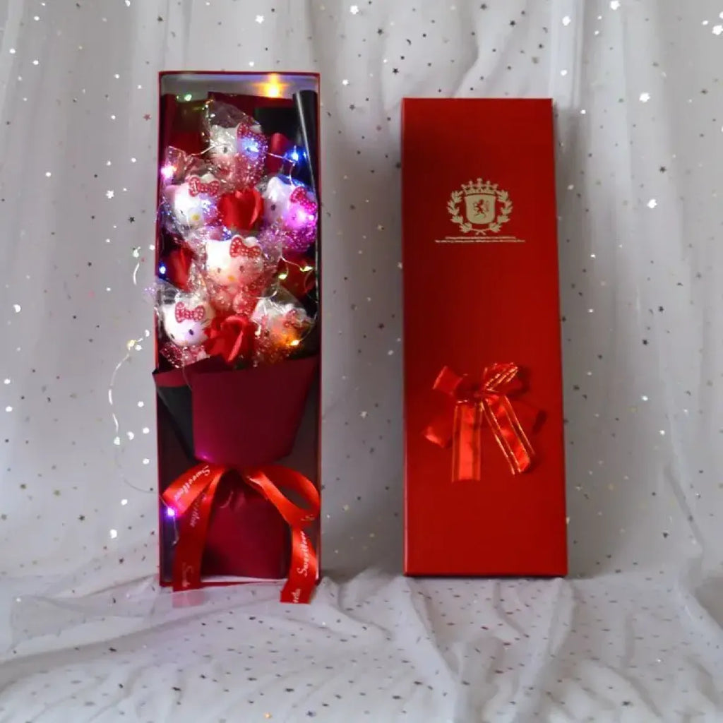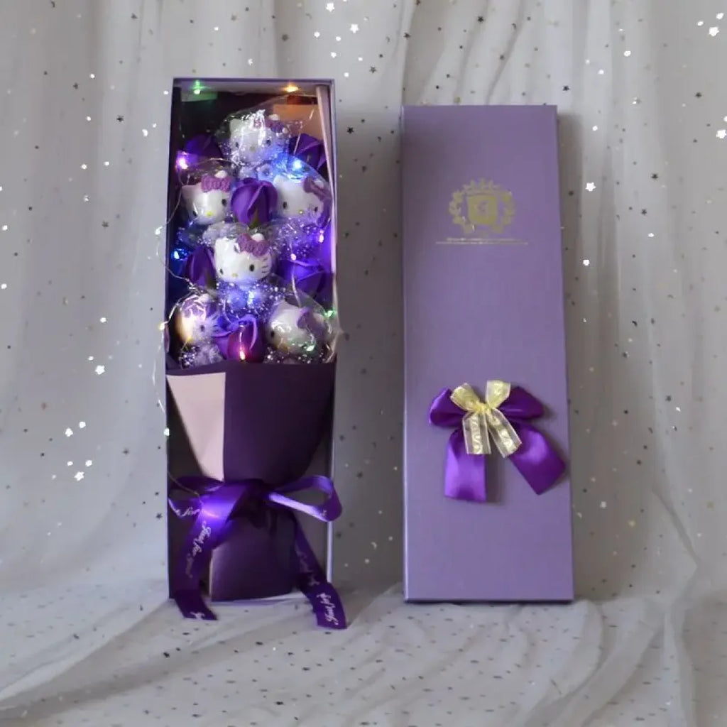 Illuminate your world with the enchanting charm of the LED Light Hello Kitty Bouquet. Featuring beloved characters such as My Melody, Cinnamoroll, and Kuromi, this delightful bouquet adds a touch of whimsy and warmth to any space.