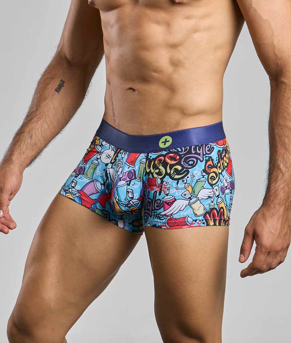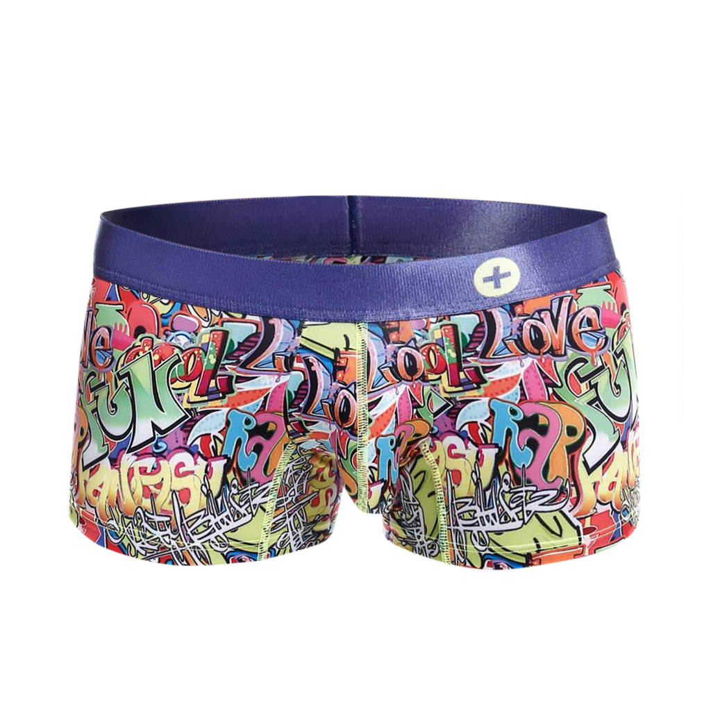 The bright and colorful doodle print adds a fun and stylish element to your wardrobe, while the low-rise waistband sits below the natural waist for a modern, flattering look. Whether you’re tackling your daily routine or just relaxing, this trunk ensures a smooth, irritation-free experience.
