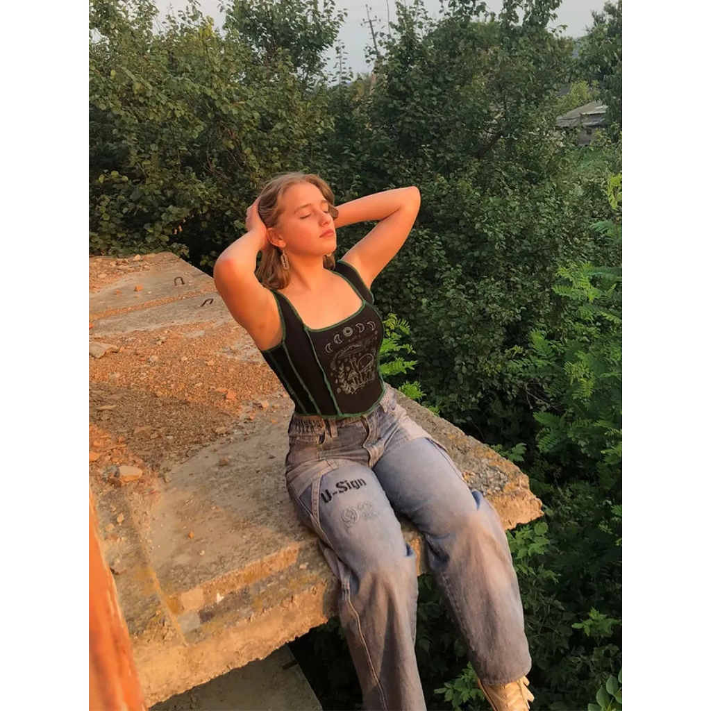 👗 Styling Tip: Pair this whimsical corset tank with high-waisted denim shorts and chunky platform sandals for a boho-chic look. Add a floppy hat and layered necklaces for a touch of wanderlust-inspired style.