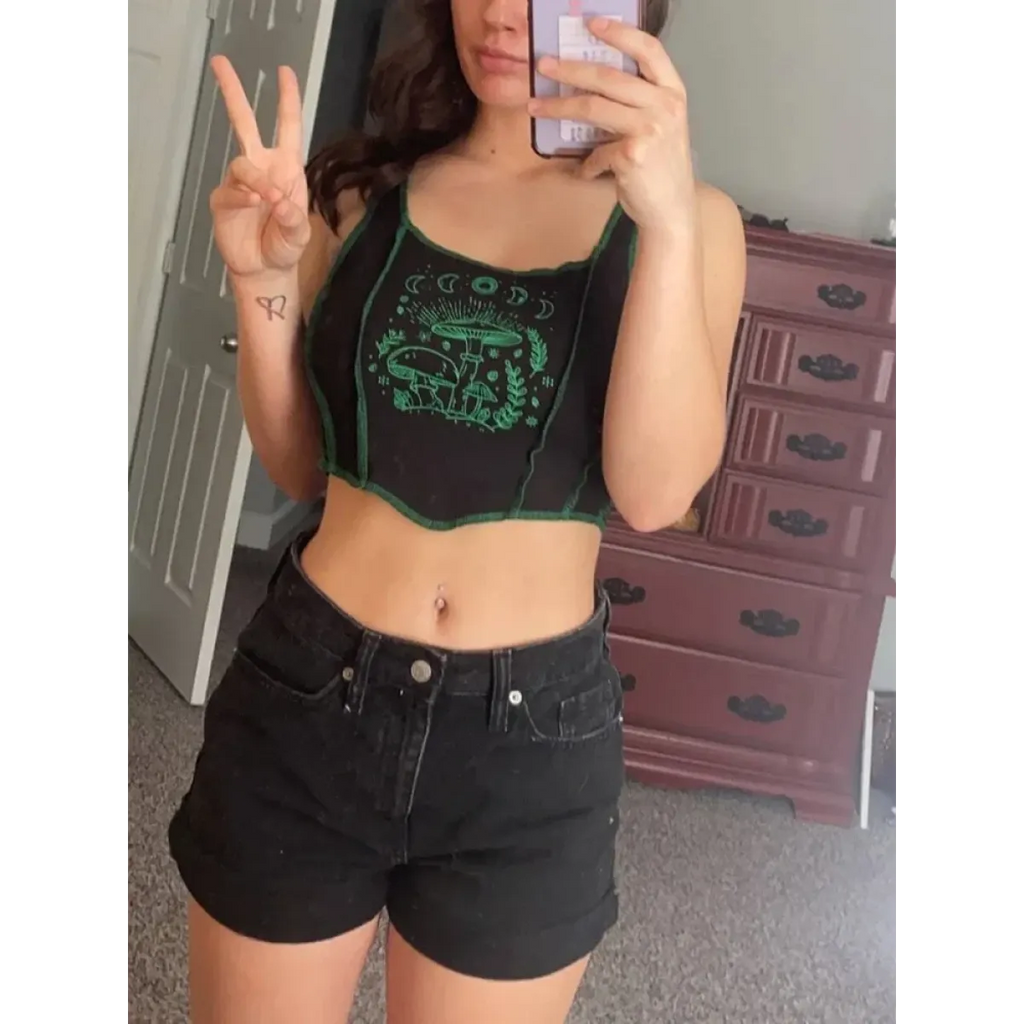 🛒 Embrace your inner dreamer and add a touch of magic to your wardrobe with the Mystical Mushroom Corset Tank!