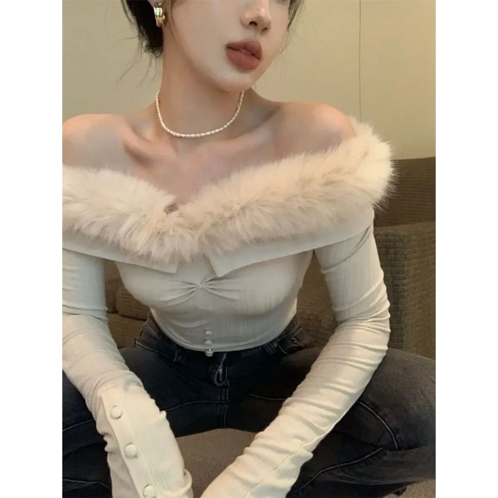 💖 Why You’ll Love the Off Shoulder Plush Trim Top – Y2K E-Girl Slim Fit Autumn Pullover