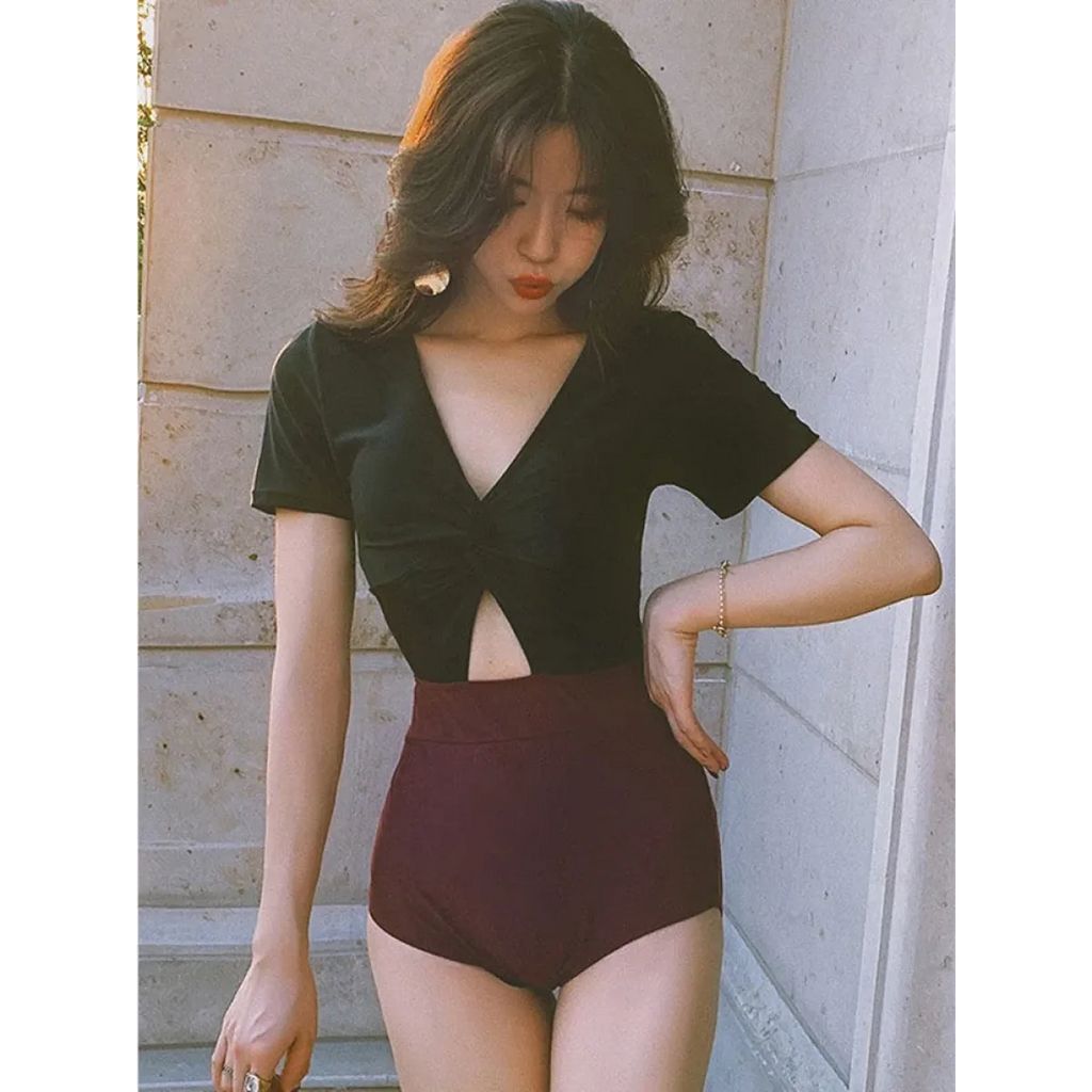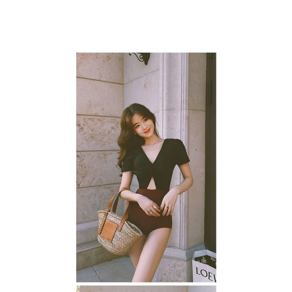 Turn up the heat this summer with our V-Neck Twist Front Cutout One-Piece Swimsuit. Designed to flatter your figure and catch every gaze, it blends confidence-boosting design with chic beach style.