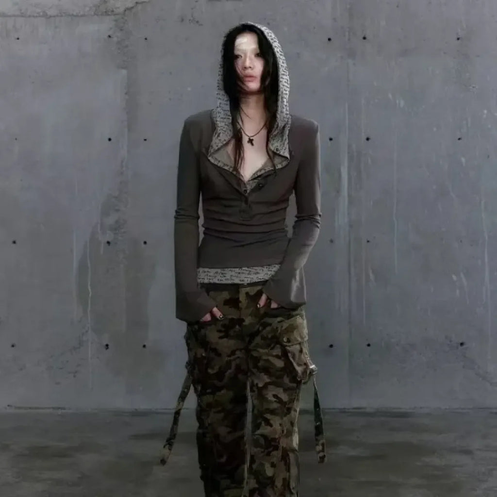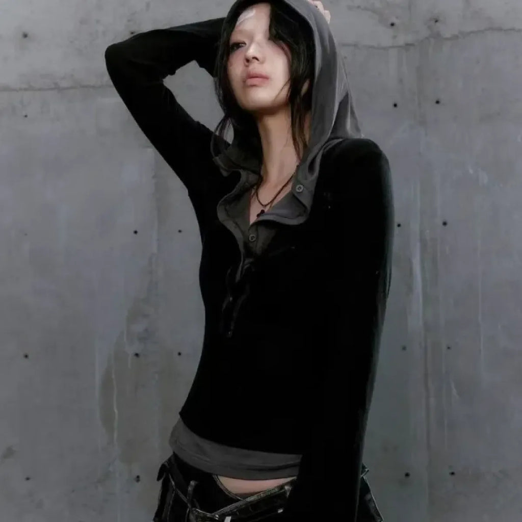 Ready to hack the fashion matrix? The Patchwork Hooded Top – Y2K Cyber Grunge Slim Fit Knit Pullover is your ultimate wardrobe upgrade. With a moody mix of textures and a fitted silhouette, this hooded piece is built for baddies who love their streetwear dark, dreamy, and a little dystopian. Whether you're channeling cyber grunge or leveling up your everyday look, this top keeps things cool, comfy, and totally Y2K.