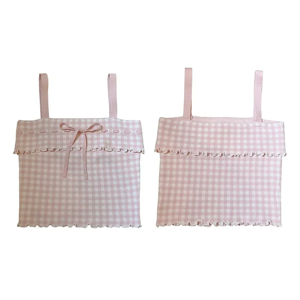 This dreamy Pink Sweet Plaid Ribbon Crop Top blends a cozy knitted texture with an ultra-feminine ribbon tie and dainty ruffle trim. It's the kind of piece that transforms any outfit into cottagecore cuteness!
