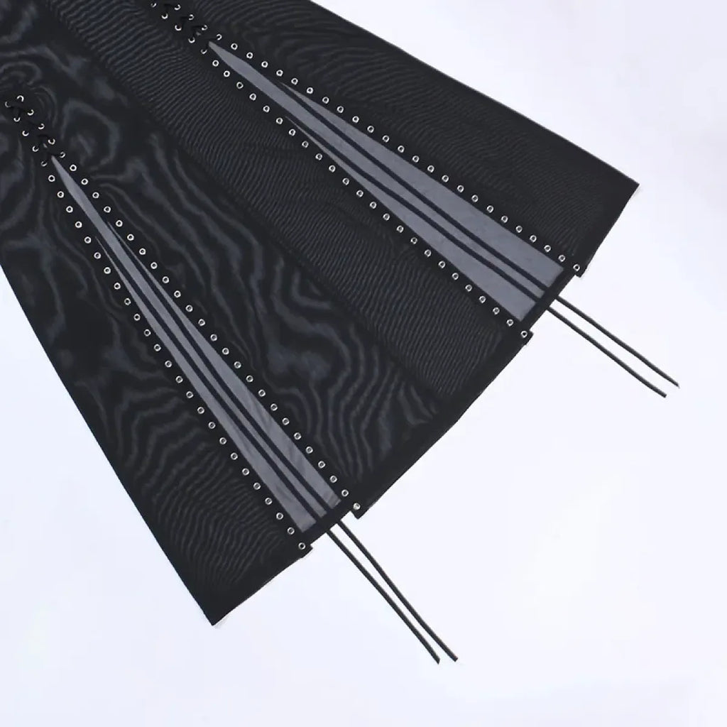 This Punk Gothic Eyelet Mesh Skirt brings hauntingly beautiful drama to your wardrobe with its sheer mesh silhouette, bold side slits, and metal eyelet accents. Designed to make a fierce impact, itβs your go-to piece for goth clubs, alternative fashion shoots, or just unleashing your power energy.